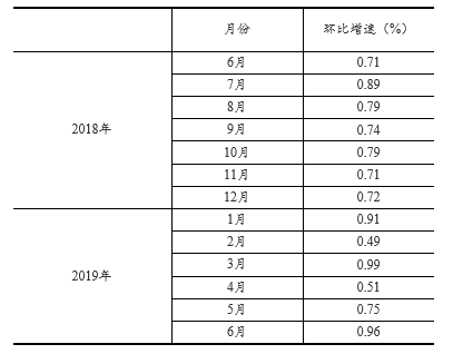 根據季節調整模型自動修正的結果,對2018年6月份以來的社會消費品零售總額環比增速進行修訂。修訂結果及2019年6月份環比數據如下: