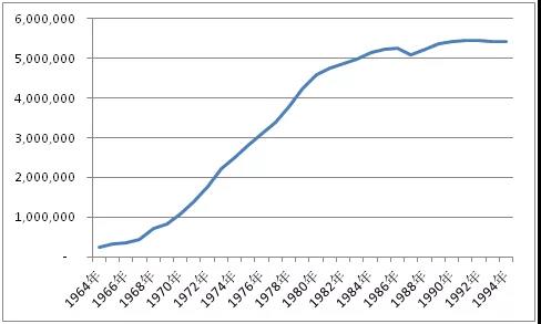 如圖,日本自動售貨機不到30年的時間實現了從20萬臺到500萬臺的突破。
