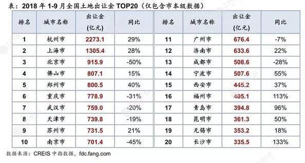 所以在賣(mài)地收入TOP20城市中,并不是一線城市一定高過(guò)二線城市。