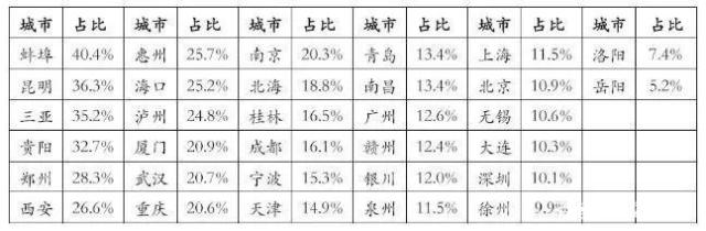 前三季度的數(shù)據(jù)顯示,房地產(chǎn)依賴(lài)度排在前五的城市,分別是蚌埠(40.4%),昆明(36.3%),三亞(35.2%),貴陽(yáng)(32.7%),鄭州(28.3%)。