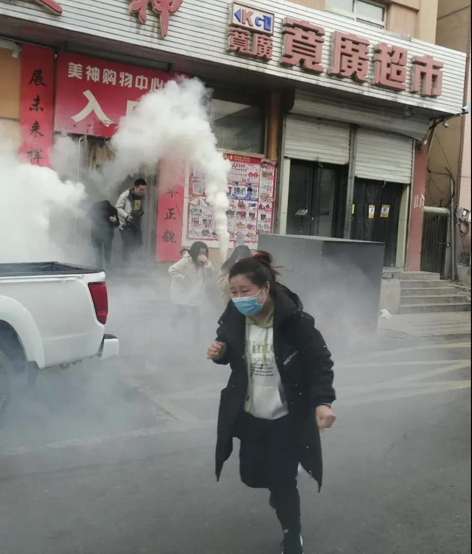 同時公司進行人員撤離,員工利用濕毛巾捂住口鼻,防止吸入有害氣體,就近選擇消防安全通道疏散。