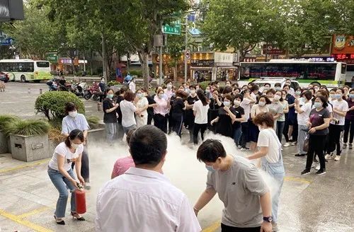 黃金廣場(chǎng)、綠葉菜市場(chǎng)  6月16日,黃金廣場(chǎng)100余名職工參加了消防安全疏散演習(xí)。隨著警報(bào)鈴聲的響起,由各樓面經(jīng)理帶頭從商場(chǎng)北樓梯井然有序疏散到商場(chǎng)東廣場(chǎng)集合。隨后,各樓面員工代表手持滅火器進(jìn)行了實(shí)戰(zhàn)操作;6月24日,在綠葉菜市場(chǎng)淞興店開(kāi)展了一次消防安全疏散演練。菜場(chǎng)人員在聽(tīng)到警鈴響起后,用濕毛巾捂鼻迅速進(jìn)行疏散逃生。菜場(chǎng)管理人員還現(xiàn)場(chǎng)進(jìn)行了滅火器使用演練,進(jìn)一步提高了大家的消防安全意識(shí)和安全自救能力。