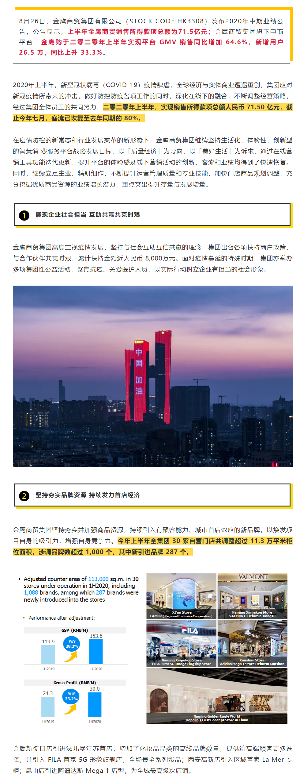 金鷹商貿2020中期業績發布 | 專注提升核心業務 維持企業長期競爭力