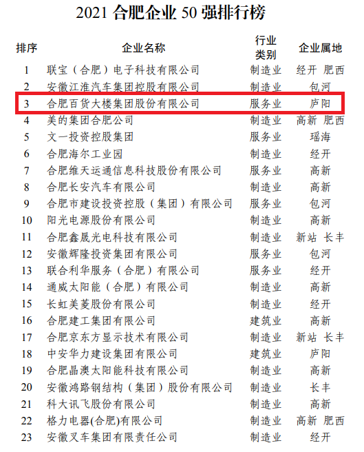 2021合肥企業50強隆重發布——合肥百大集團穩居前三甲
