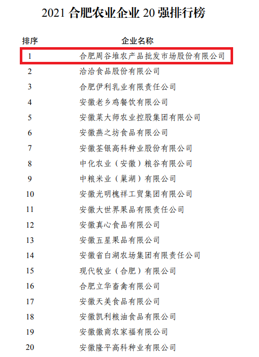 合肥百大集團黨委書記、董事長劉浩作為合肥市企業(企業家)聯合會會長,出席本次會議并在會上發布2021合肥企業50強、制造業企業30強、服務業企業20強、建筑業企業20強、農業企業20強、全國行業領軍企業榜單。今年是合肥市第13次向社會公布合肥企業50強,合肥百大集團位列合肥企業50強第三位,同時繼續位列服務業企業20強第一位。旗下合肥周谷堆農產品批發市場股份有限公司位列合肥農業企業20強第一位。